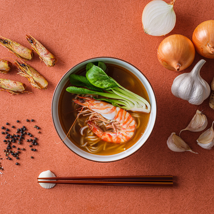 | 原材料名 | 野菜(たまねぎ(国産)、しょうが、にんにく)、植物油脂、清酒、海老殻、風味調味料(飛魚)、本みりん、薄口しょうゆ、ブイヨン、食塩、砂糖、魚醬、ブラックペッパー、ガーリックパウダー、酵母エキス、しょうがパウダー/加工デンプン、(一部にえび・小麦・大豆を含む |